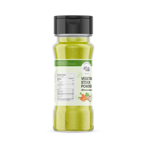 Vegetable Stock Powder is a natural alternative to seasoning cubes, made from vegetables, herbs and spices. It is 100% plant based and can be used to season stews, porridge, stir fry, sauces and works great in most meals. One trial will keep you hooked.